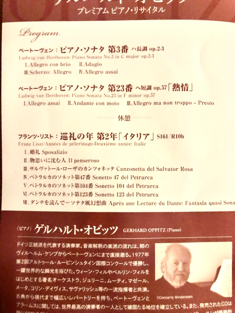 ゲルハルト・オピッツ氏のリサイタルに行ってまいりました。