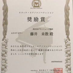 3日の西日本地区本選は、本選奨励賞を受賞いたしました。
