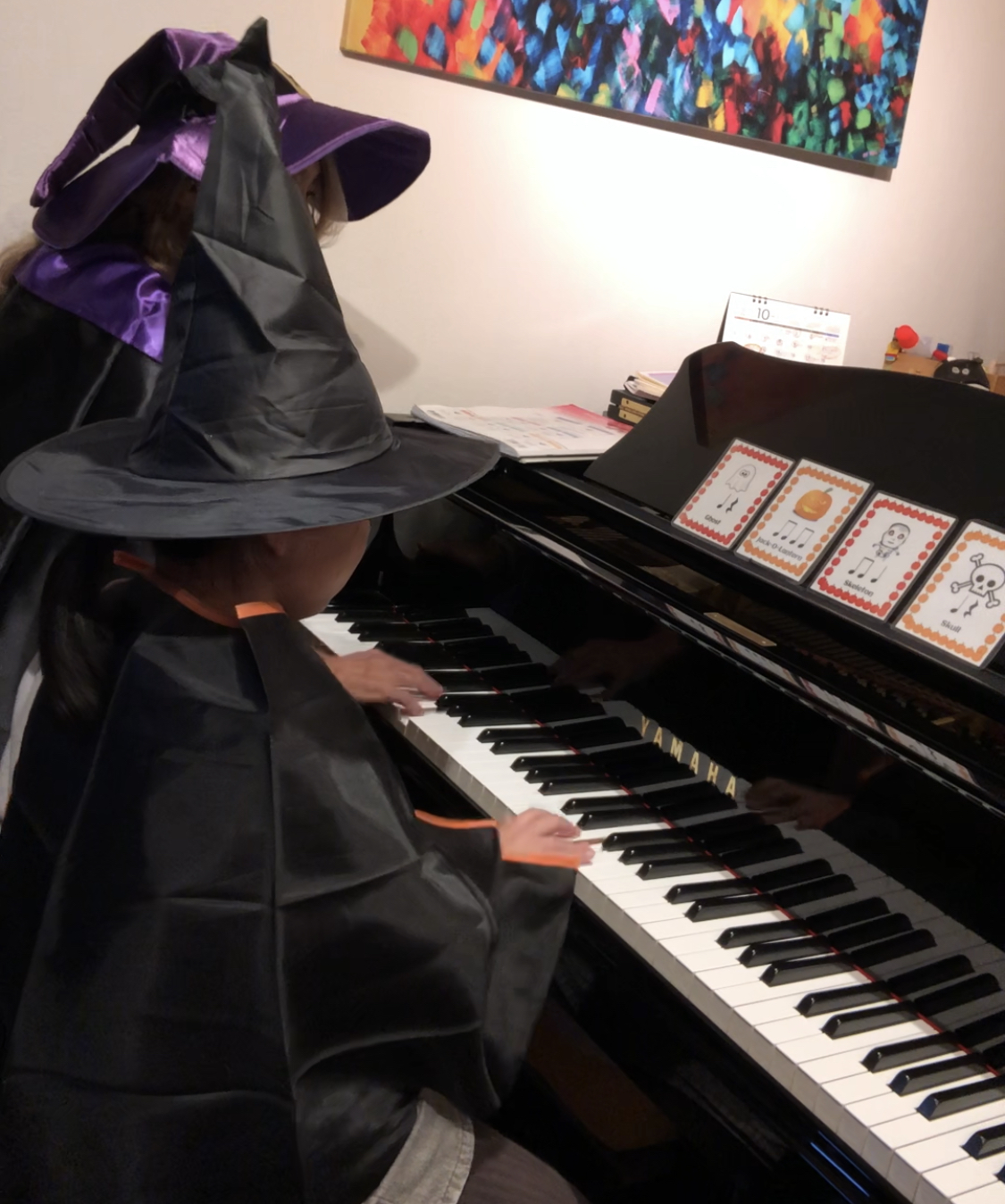 最後は"Trick or treat"の言葉をピアノで模奏したり、即興した後、